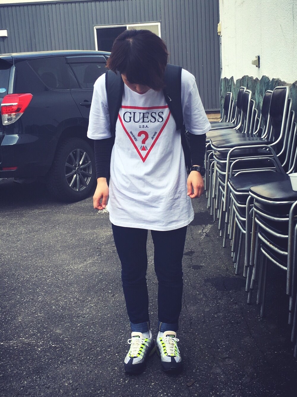 GUESSのTシャツとairmax95のスニーカーがお気に入りです。