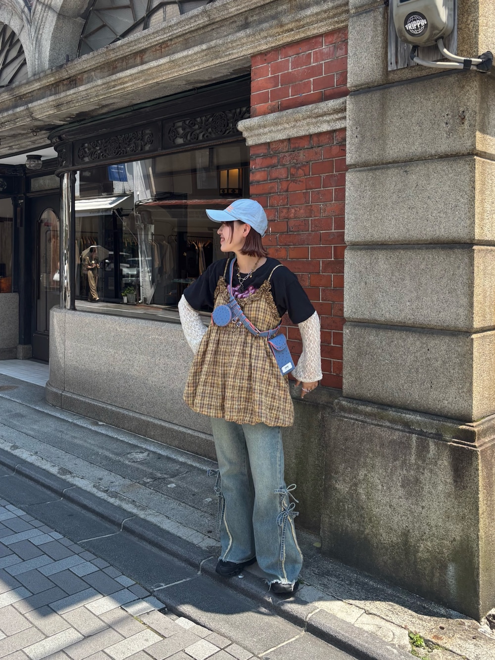 ウタ(CIAOPANIC)のキャミソール「フリルチェックバルーンキャミビスチェ」を使ったコーディネート