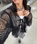 ウタ(CIAOPANIC)のTシャツ/カットソー「【2サイズ展開】メッシュリボンフーディーカーディガン」を使ったコーディネート
