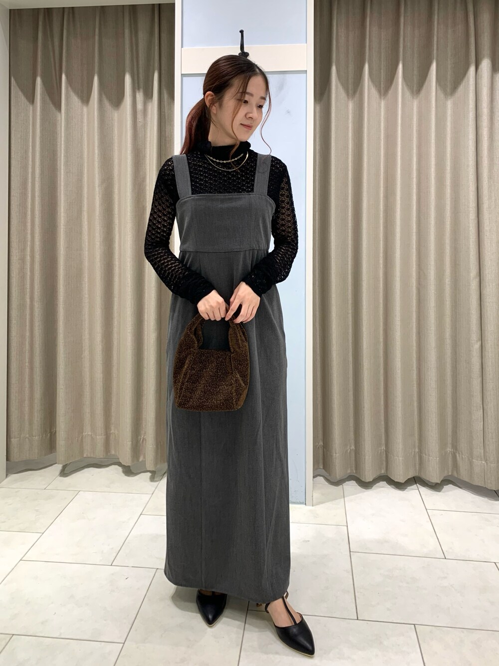 すとんとしたボクシーなシルエットが とても上品なジャンパースカート⑅⃛ 胸下の切替がスタイリングに メリハリ感もプラスしてくれるだけでなく 縦長のラインを強調してシルエットを すっきりとみせてくれるところが◎ 今回はレース柄ハイネックニットを合わせて トレンドライクな着こなしにしてみました♡ ジャンパースカートは合わせるトップス次第で カジュアルにも綺麗めにも スタイリングが楽しめるアイテムです♪ ぜひチェックしてみてください୨୧