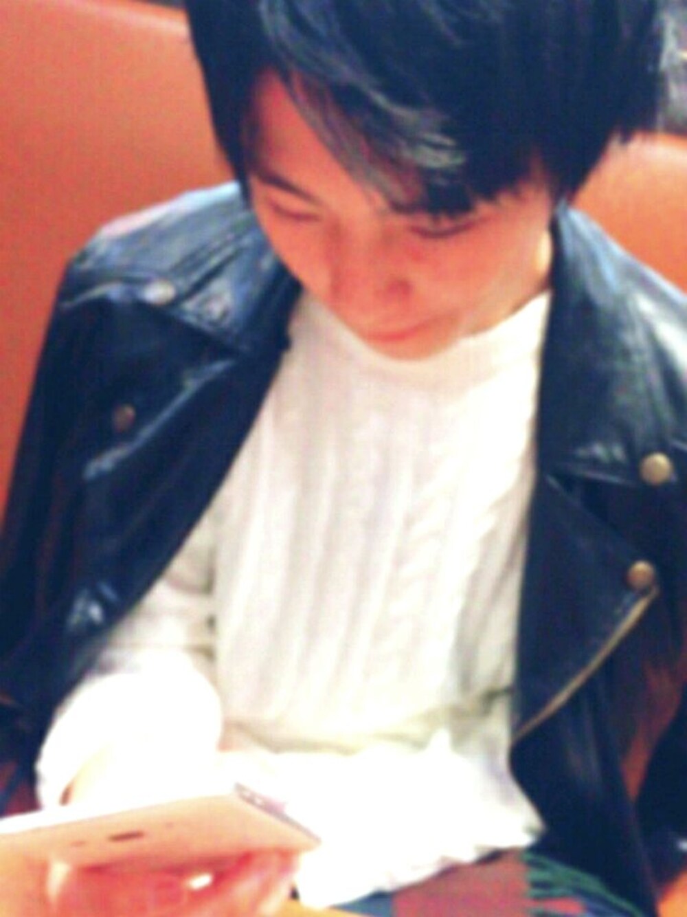 本当に久々の投稿!! ニットにライダース肩がけしただけです! シンプルで気に入ってます!