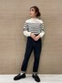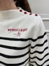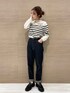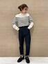 シンプルなフレンチカジュアルスタイル❤️ コットン100%で柔らかい肌触りの ボトルネックニットは左肩の赤ボタンと アニエスからのメッセージ刺繍がポイント🖋 スタッフ身長153cm