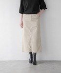 程よくぴたっとするシルエットの襟付きカーディガン⚫️ シャリ感のあるドライタッチなニットなので早めに取り入れやすい秋アイテム🍁 チノスカートもタイトすぎず、でも広がらずの大人っぽいシルエット◎ 深めのスリットが入ってるので動きやすいのもポイントです🙆♀️