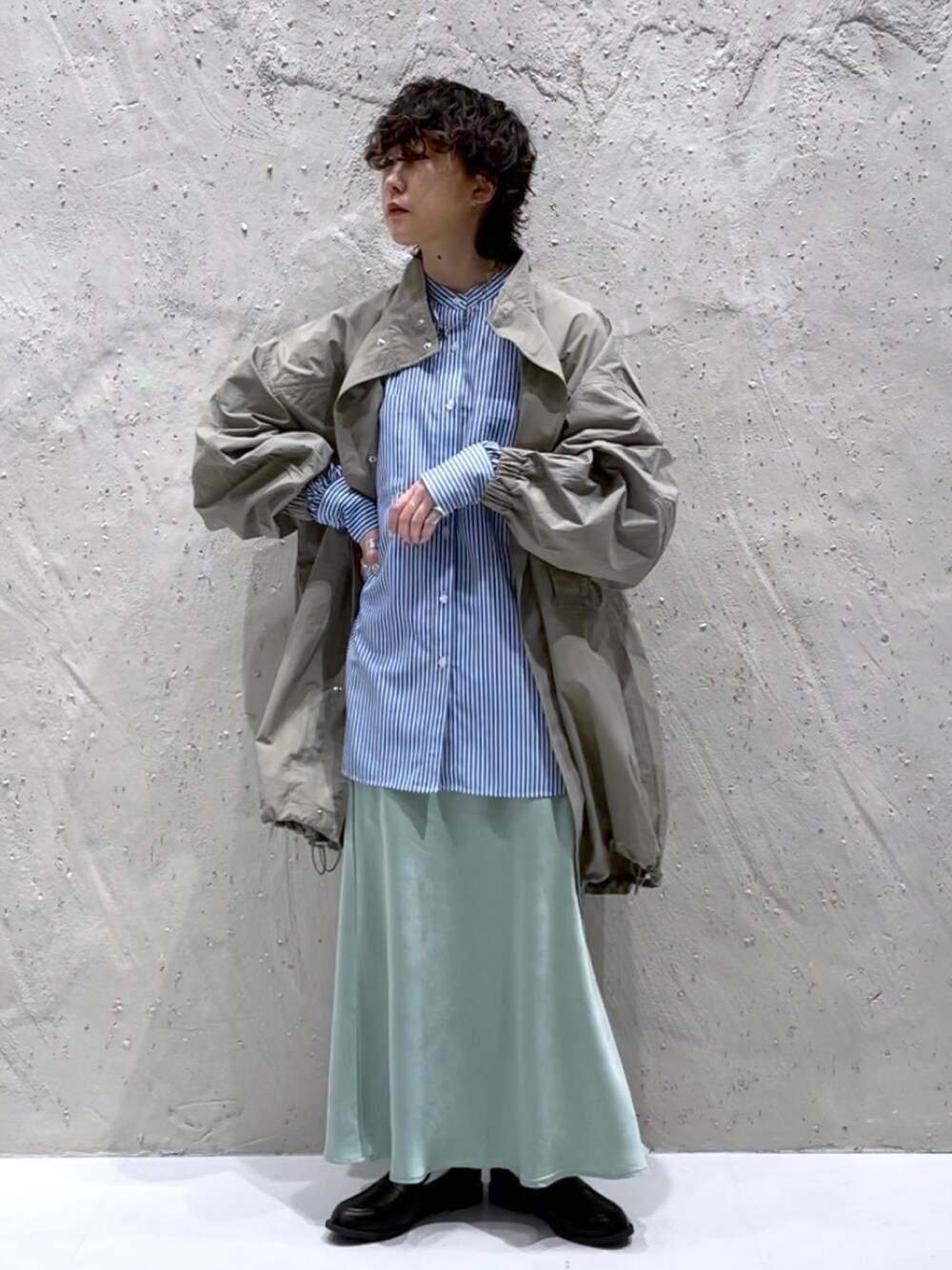 寒色でまとめた春スタイリング🦋 ジャケットはグリーンが強すぎないカーキなので、カラーコーデが可愛く決まります🙆♀️