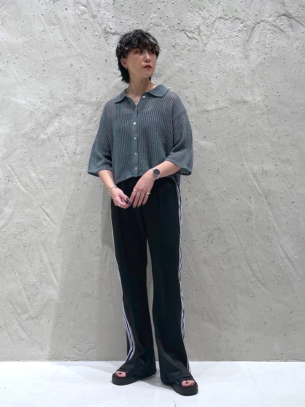 店頭で人気のグリーンメッシュポロ⛳️ 編み地が大きめで涼しげです🫧 ラインパンツは脚が綺麗に見えて 大人も履きやすいシルエットに🙆