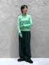 グリーンのワントーンコーデ グリーンの濃淡がしっかりついているので 派手になりすぎず意外と馴染んでくれます◎ トップス▷ 手元にチュール素材の袖がドッキングされており 一枚でも様になるデザインニット チュール袖の上からブレスレットや 時計をつけるのが可愛いです◎ やや細身のつくりですが、身体のラインを 拾いすぎない適度な厚みがあるので 秋口に一枚で着やすくなってます☺︎ 腰にかぶるくらいの丈感なので アウトで着てもすっきりと着れました! パンツ▷ リアルバイしたゆったりワイドパンツ◯ yuwらしいメンズライクなシルエットが素敵です スウェットなどで思い切りカジュアルに着ても、 コンパクトなトップスをインして綺麗目に着ても どちらも様になる万能なパンツになってます とろみがあり柔らかく、シワになりにくい生地で 取り扱いが楽なのも嬉しいポイントです! 他のスタイリングはこちらから! ≫