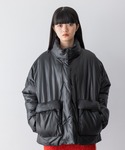 光沢とシボ感のある表面感で おしゃれに決まる中綿ジャケット ブロックがないすっきりとしたデザインなので カジュアルすぎず、大人っぽい雰囲気で着ていただけます◎ 着丈は158cmでヒップに被るくらいで 裾を絞ればよりコンパクトなシルエットになります しっかり中綿が入っておりボリュームがありますが ややゆとりのあるサイズ感なので インナーにニットやスウェットを着やすくなってます☺︎ インナーに着てるワンピースのスタイリングはこちら! ≫