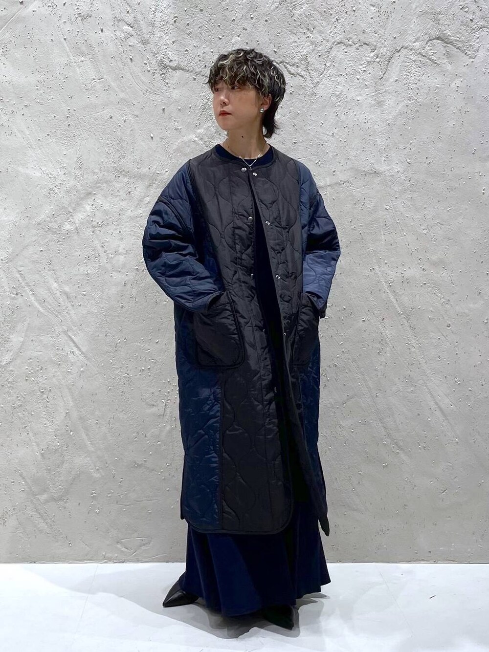 バイカラーのデザインが素敵な キルティングコート◎ 品のいい光沢のある質感で キルティングデザインでもカジュアルになりすぎず 大人の方も取り入れやすいアイテムです しっかり長めの丈感で、身幅にもゆとりがあるので インナーのアイテムを選ばずに使えます☺︎ リバーシブルで着用可能で、 裏面はシンプルで使い勝手のいい ブラックのワンカラーになってます! 機能性のある中綿サーモライトを使用しており 軽量ですが保温性にも優れてます◎ 他のスタイリングはこちら! ≫