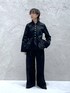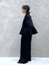 ブラックセットアップ🐈⬛ かっこよさもありつつペプラムデザインで レディライクな要素もあるバランスを意識しました◎ ジャケット▷ ウエストからふわっと広がるシルエットが素敵なシャツジャケット やや厚手のコットン素材でハリのあるシルエットになってくれます 身頃はややスッキリしたサイズ感ですが 袖幅にゆとりがあるため 今時期はリブニットなど厚手のものも着やすくなってます パンツ▷ ジャケットと同素材でお作りしたワイドパンツ こちらもハリがあり立体感がとても綺麗です☺︎ 158cmでMサイズ着用、 フラットシューズでギリギリの丈感でした! ヒールや厚底のシューズを履くと よりスッキリと履けます◎ ウエストがゴムでない分、 ヒップ周りにボリュームが出ずすっきりと着られるのが魅力です