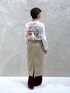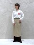 今年らしいレイヤードスタイル🫶 ロゴTシャツでカジュアルに合わせてみました◯ Tシャツ▷ POPなロゴがポイントのロンT ややゆったりとしたサイズ感ですが、 肩の位置が落ちすぎてないので すっきりと着ていただけます! 着丈は少し長めなのでインスタイルもしやすくやってます◎ ジャケットやスラックスなどの綺麗めなアイテムの外しとして合わせるのがおすすめです☺︎ スカート▷ サイドのラウンドカットがポイントになる タイトスカート 裏地が取り外せるので、カラーパンツなどを入れて レイヤードを楽しめます◎ スーツのような綺麗めな素材感でハリもあるので シルエットがとても綺麗です☺︎