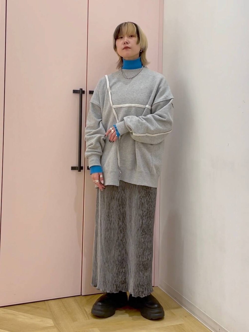 リアルバイコーデ🐘🩵 スウェット▷ 切り替えデザインが可愛いスウェット! 裏起毛で暖かいのはもちろん、 厚手すぎないので着膨れせずに着ていただけます◎ ロング丈はお尻まで隠れる安心サイズです🫶 スカート▷ とにかくストレッチが効いていて履き心地抜群です! 細かいプリーツが入っていて細見え効果も◎ 身体に沿いすぎないIラインシルエットなので 下半身が気になる方でも履きやすくなってます💯 温かみのあるベロア素材でこの時期らしく着映えしてくれるデザインです☃️ ----------------------------------------- いつも見ていただきありがとうございます🌞 大人っぽいけどどこか個性のある スタイリングが好きです🥳 たくさんUPしてますのでぜひフォローしてください◎ ≫ Instagramは私服もUPしてます👦🏻 ぜひフォローしてくれたら嬉しいです☺︎ ≫ 新小松店の大人かわいいスタイリングはこちらのスタッフにお任せください💐 ≫