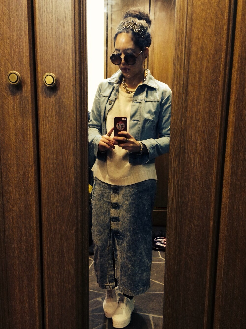 Tocoのデニムスカート「デニム前ボタンスカート」を使ったコーディネート