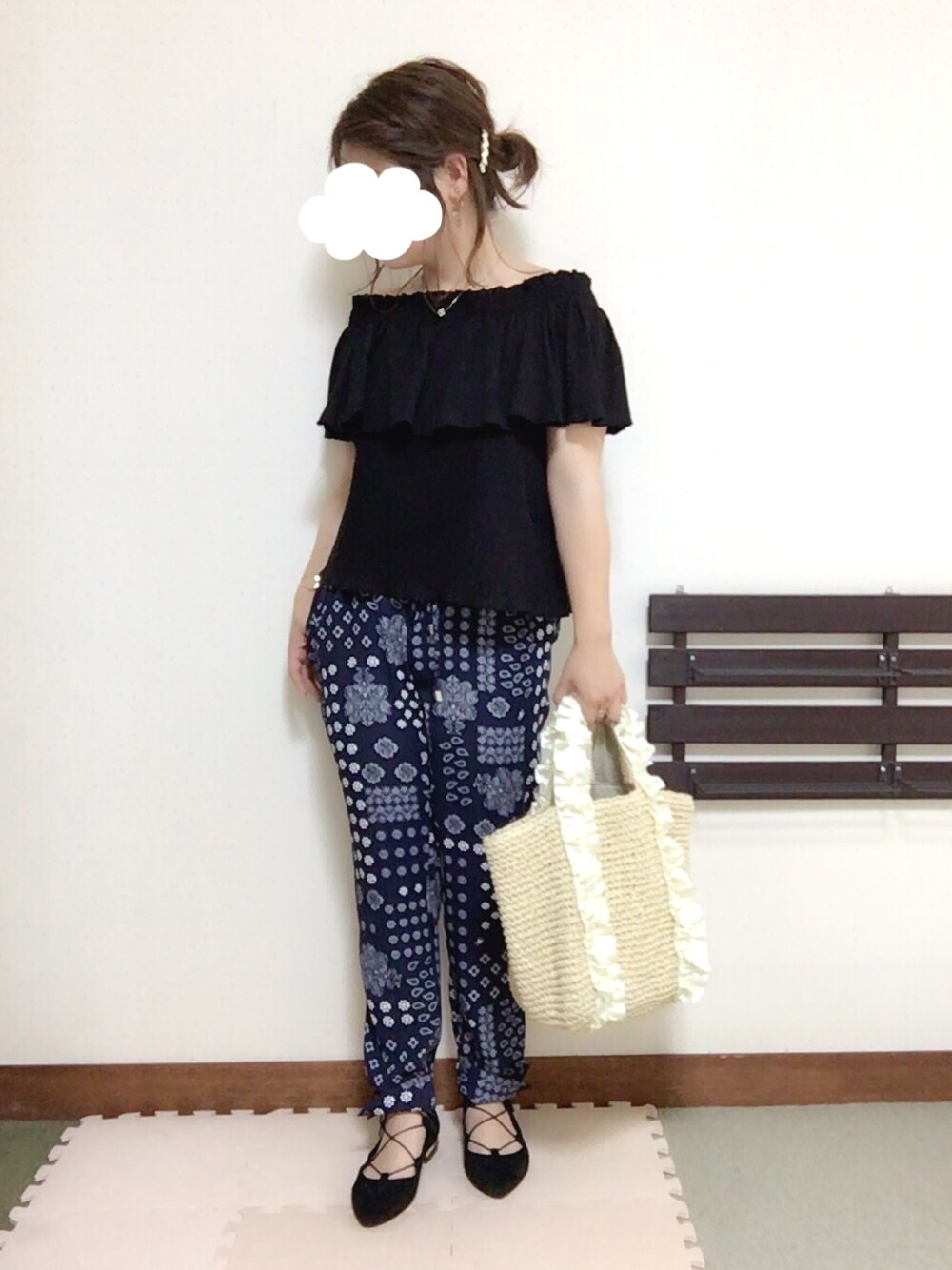 tocoのかごバッグ「【SALON de RUBAN】 ペーパーフリルハンドバッグ」を使ったコーディネート