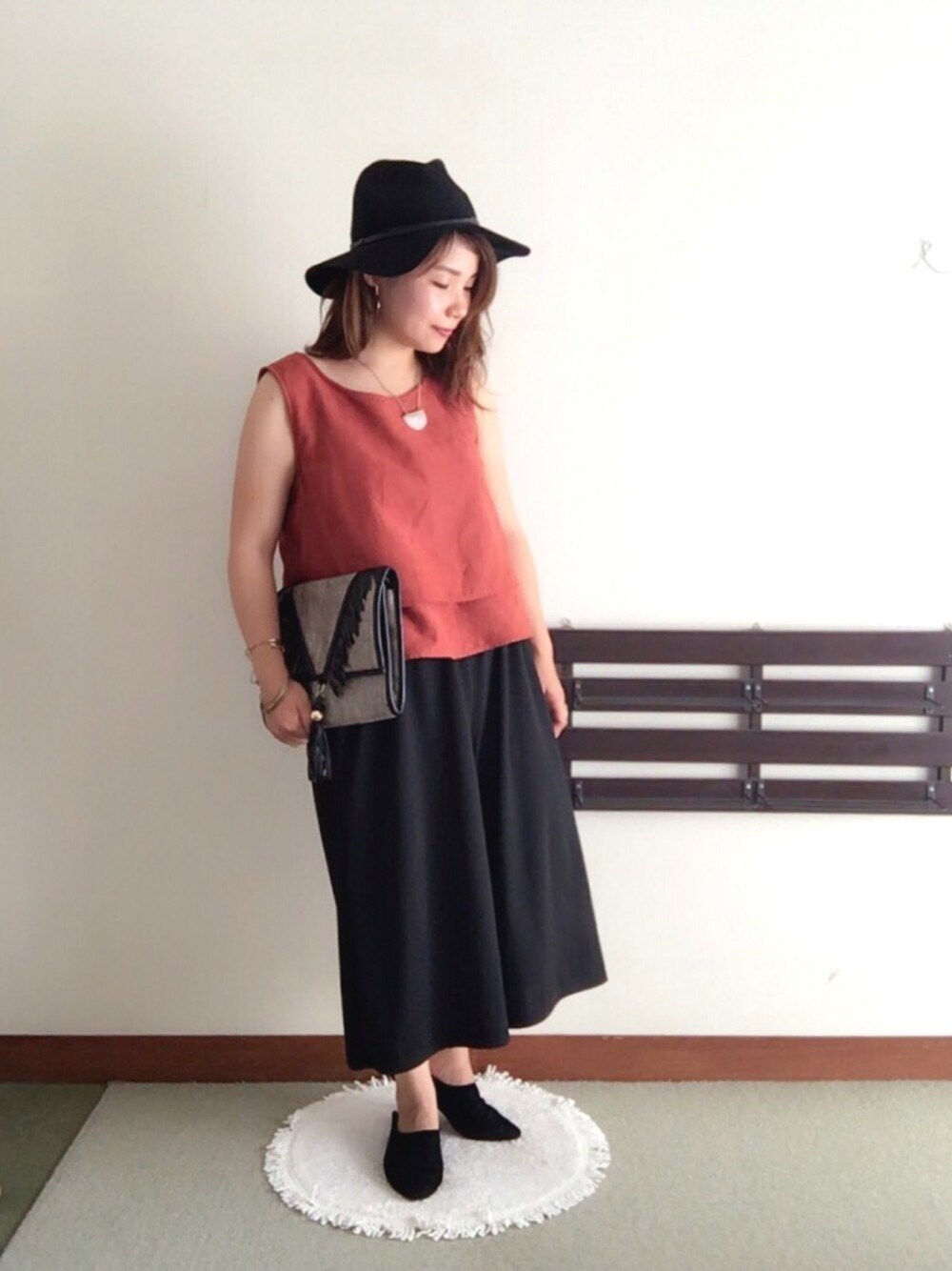 ドラフト参加中で連投すみません💦 今日は暑かったですねぇ🔥 再びノースリーブで失礼します🙇🏻 テラコッタ×ブラックは大人っぽくて好きです👠 雑誌の占いに、外見を思っ切り変えると良いって書いてました🔮 ふむふむ…🤔笑