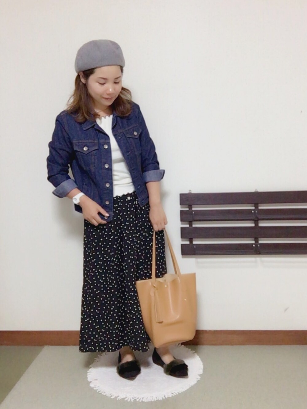 襟のデザインがお気に入りのトップスは ジャケットの中に着ても存在感バツグン✨ ドットスカーチョもモノトーン好きには たまりまへん❤️笑 ドラフト参加中です✨ よろしくお願い致します😆