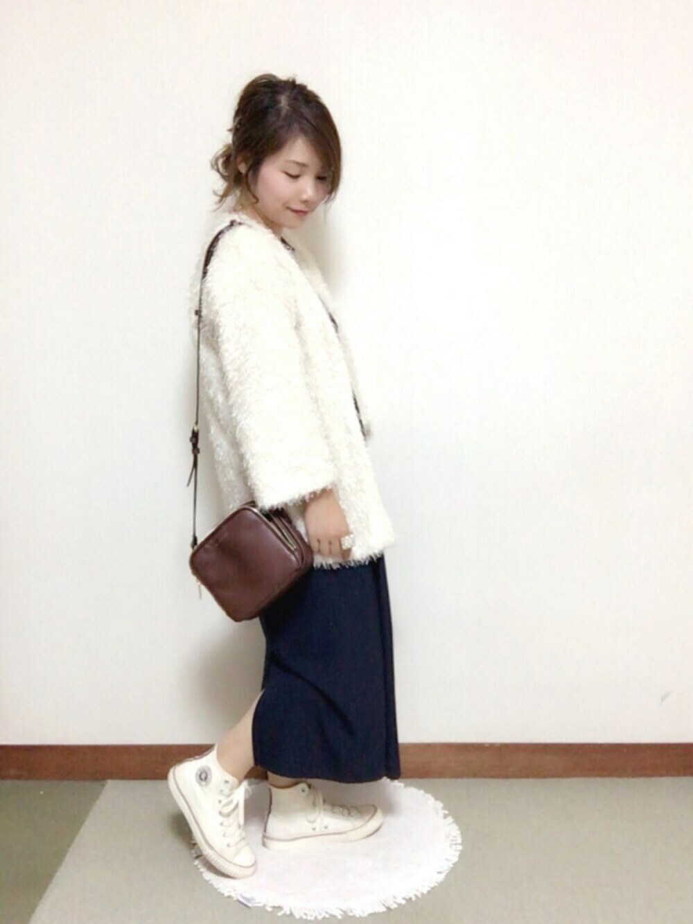 モケモケのカーディガンを スニーカーではずしてみました👟 このモケモケを見て息子は 「このお洋服、天ぷらみたい」 って言いました…😱 子供は純粋な反面、時に残酷です😂笑
