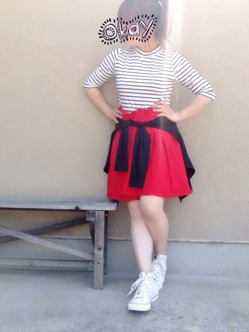赤いスカートを堂々と履けないお年頃なので、笑 腰巻きスタイルで赤の面積を少なめにしました(・ω・) でも、高めのポニーテールで若さをアピール!(°∀°)✳︎ 来年は母の日にこどもからカーネーションを貰えるかな…♡ tops : GU skirt : E Hyphen World Gallery shoes : PF Flyers ▲△ぽっちゃりが頑張るオシャレ△▲