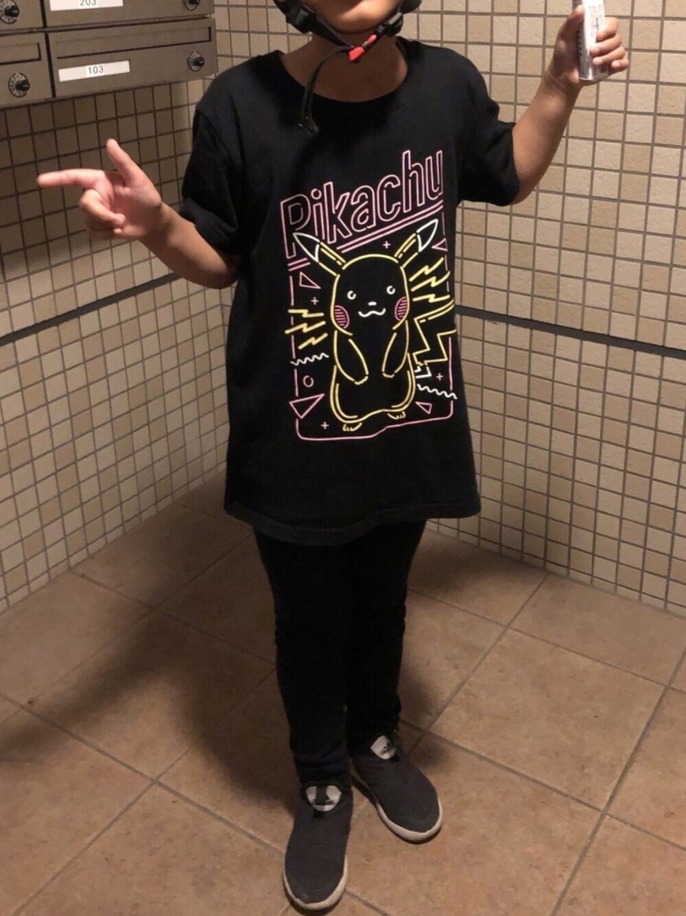 次男が自分で選んだコーデ 全身黒の大きめTシャツにスキニーパンツってオシャレやん♡靴もこれが好きみたいで、こだわり派な男😏