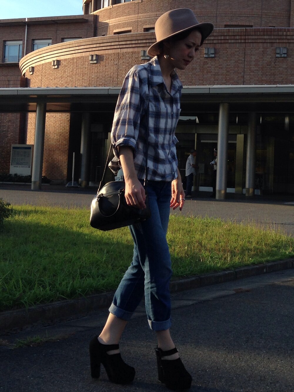 ブラック系のショルダーバッグを着用したレディースの春コーディネートの1枚目の写真