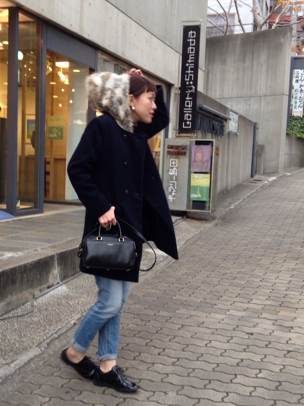 ブラック系のショルダーバッグを着用したレディースの春コーディネートの1枚目の写真