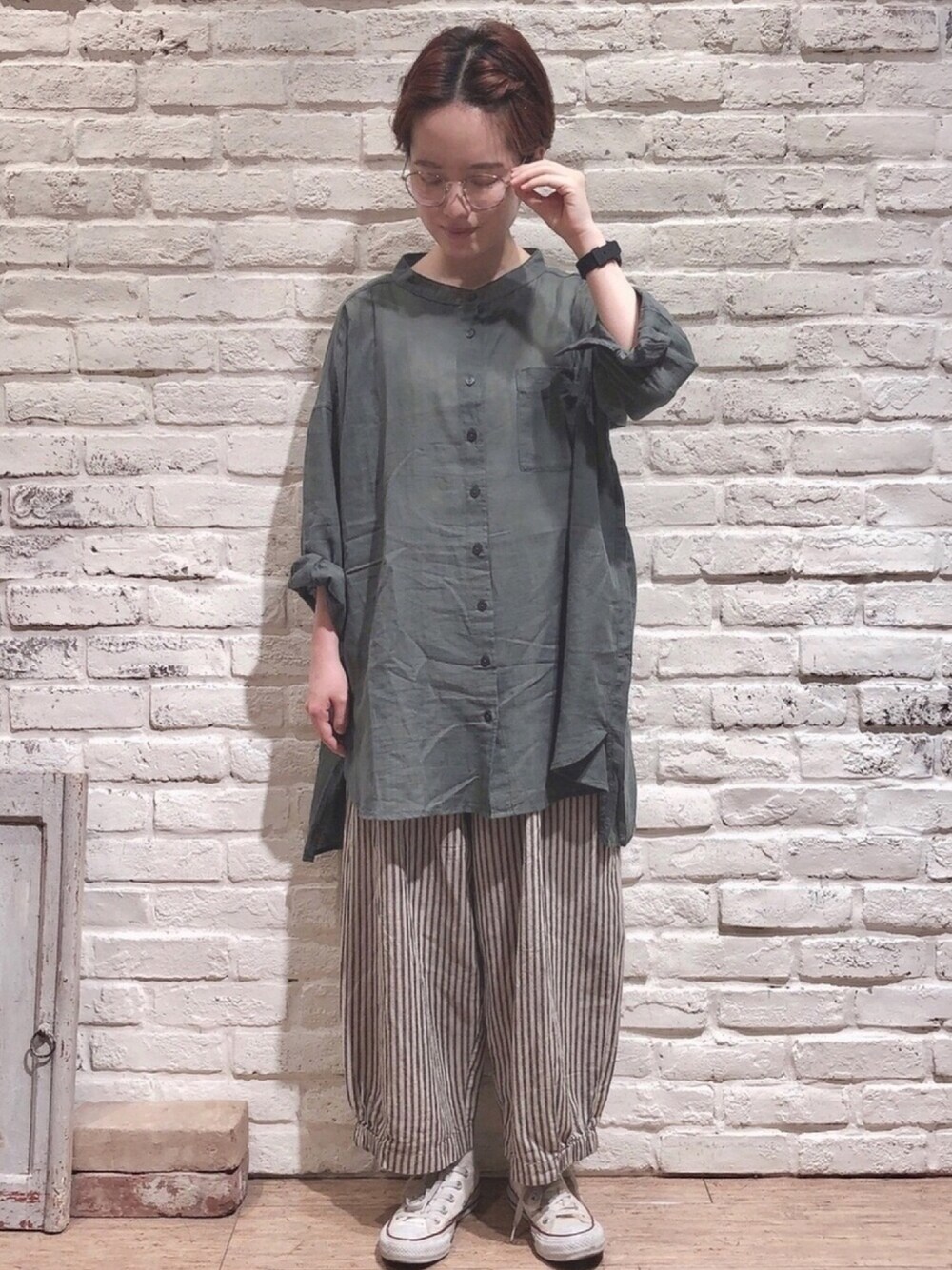 はまなかのシャツ/ブラウス「バンドカラーシャツ」を使ったコーディネート