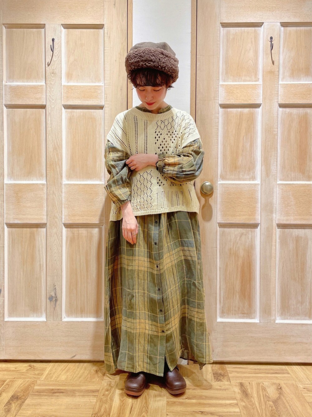 ご覧頂きありがとうございます🌼 Samansa Mos2 home's 大阪LUCUA1100店の はまなかです◡̈ 📢 \ お知らせ / *本日より2buy10%OFF開催中です📚 (⚠︎TSUHARU、home'sは対象外です。) *ただいまWESPO利用でルクアポイント2倍💳 →〜9月30日(木)まで開催中! ------------------------------- 秋らしいグリーンのチェックワンピース🌱 パッチワーク柄のベストと合わせました* ワンピースは丈が長めなので、低身長さんは 今回のように高さのある靴を合わせると◎ もこもこ帽子で季節感をプラスしてみました☁️ ------------------------------- 大阪LUCUA1100店 WEAR🌿 *きのした店長【@kinoshitamizukii】 *かとうさん 【@kanako1192jp】 *chiiiさん 【@nukosm2】 -------------------------------