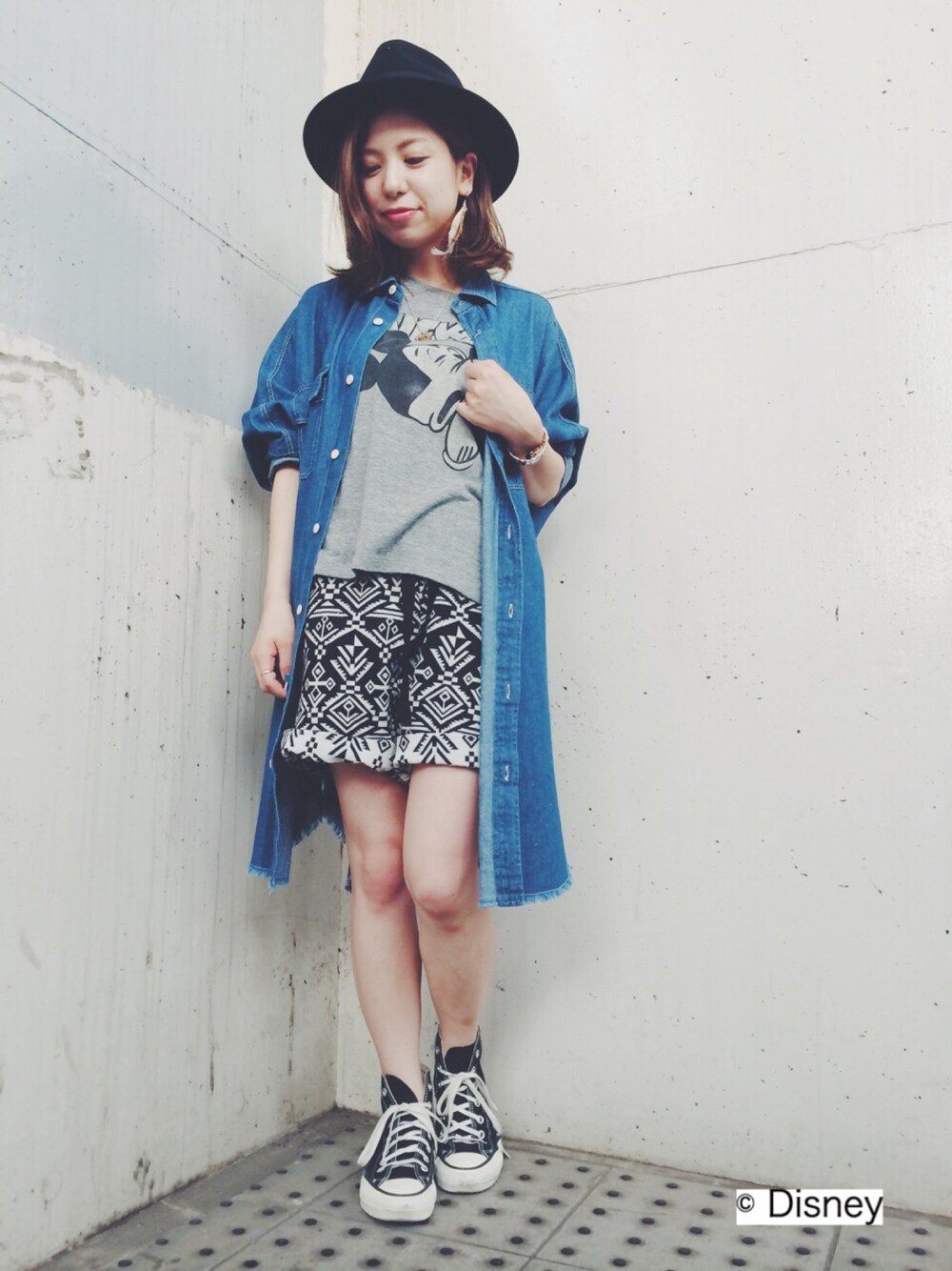 千葉店のトガノです! WEAR始めました😄 カットオフされた裾が綺麗なシャツワンピにネイティブ柄のクライミングショートパンツを合わせました! フェスでもネイティブ柄が映えるのでフェスコーデにもオススメです💓