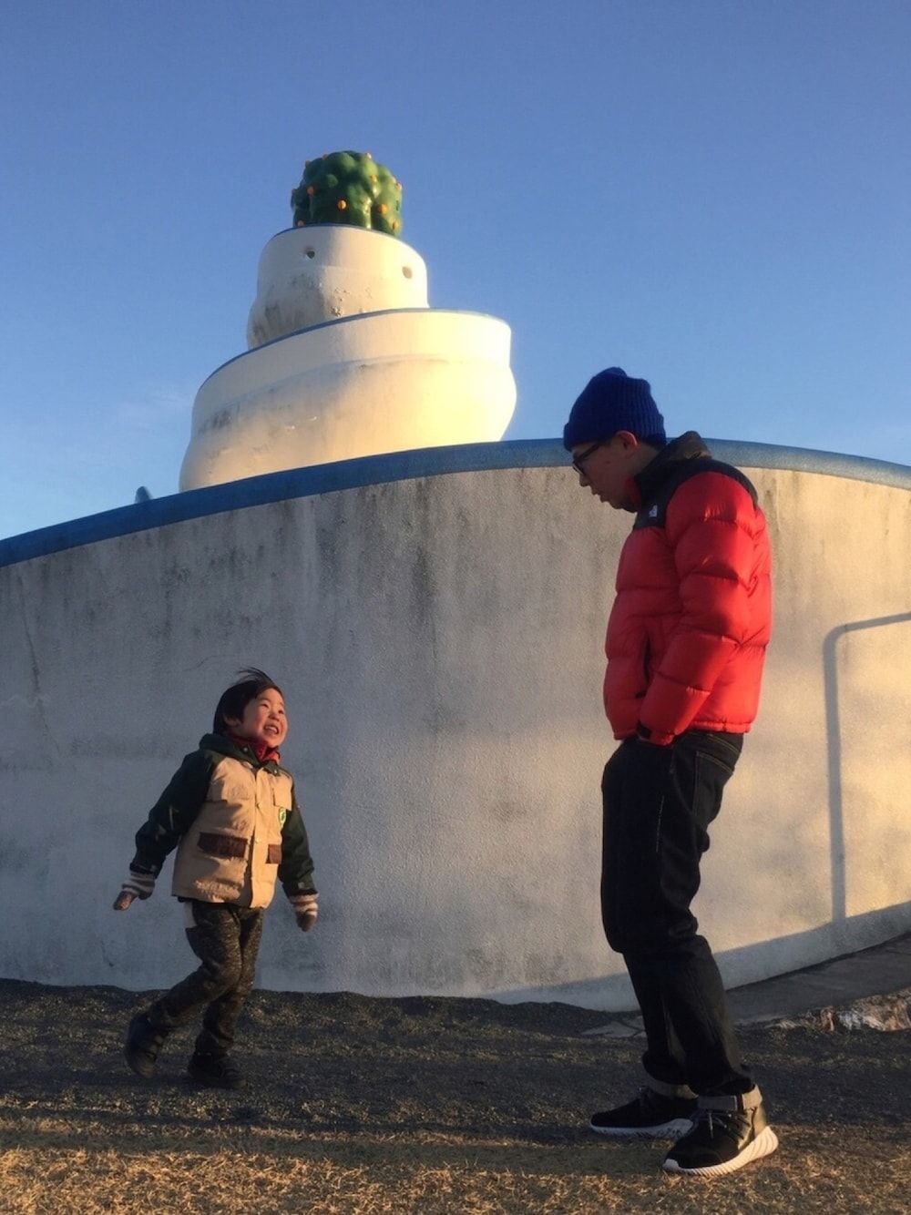 寒波の中… 息子のリクエストで極寒の公園へ❄️❄️❄️ 息子の見えないけど… 2人共赤いダウンでオソロ✌️✌️✌️