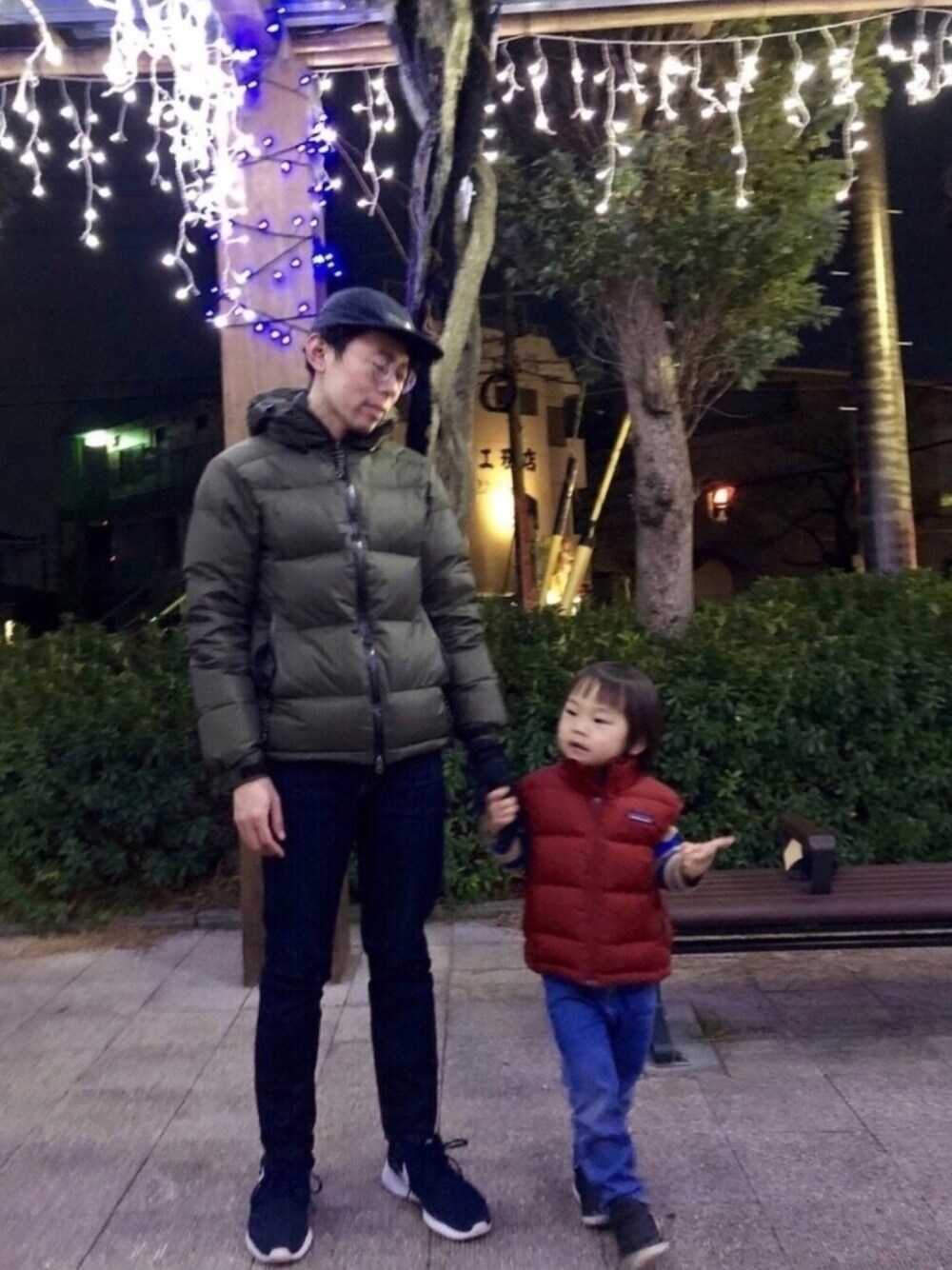 子供達と近所の公園のイルミネーションを見に👨👦👦 長男撮影のためブレブレ📸 900円でGETしたコーンデニムがポイント👖
