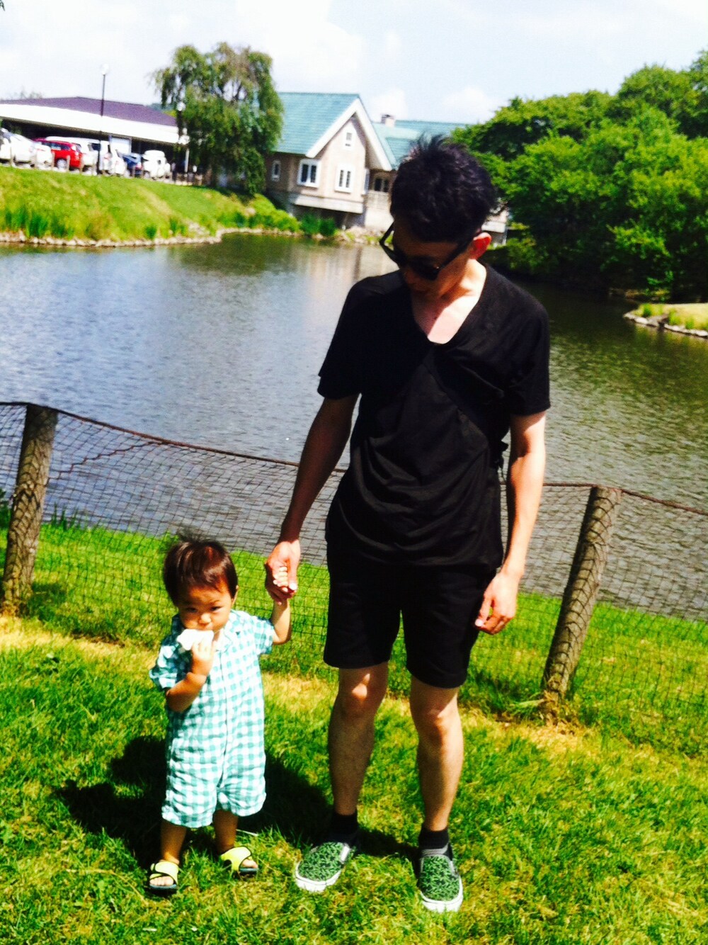 夏休み3日目♪♪ 軽井沢のアウトレットに行ってきました😊 息子と芝生の上でランチ 後の一枚📷 オールホワイトタグの日に オールブラック・・・天邪鬼です😎 靴が芝生に同化してる(笑)