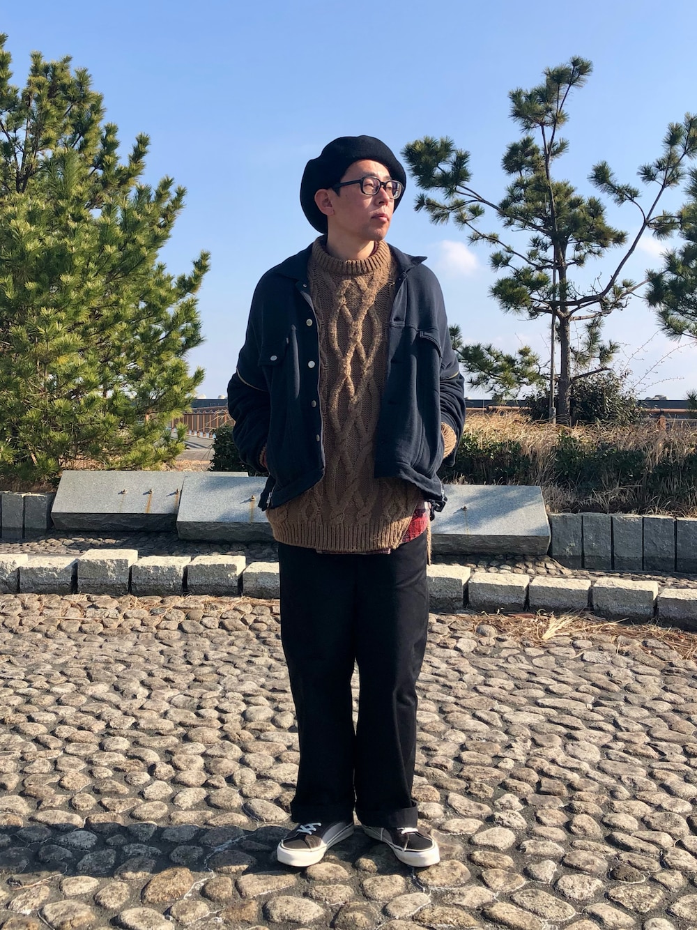 GU×undercoverのニットと 香港製Levi‘s silvertabのチェックシャツを facetasmのスウェットGジャンからちらリズム