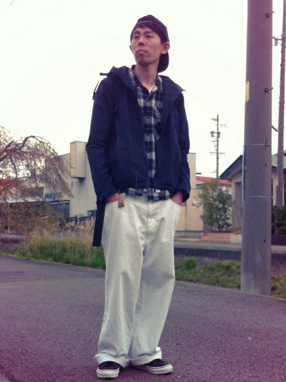 ブルゾン:NORTH FACE シャツ:w)taps ベルト:USED シューズ:VANS×UNDERCOVER 花柄? そんなもん着るか(笑)
