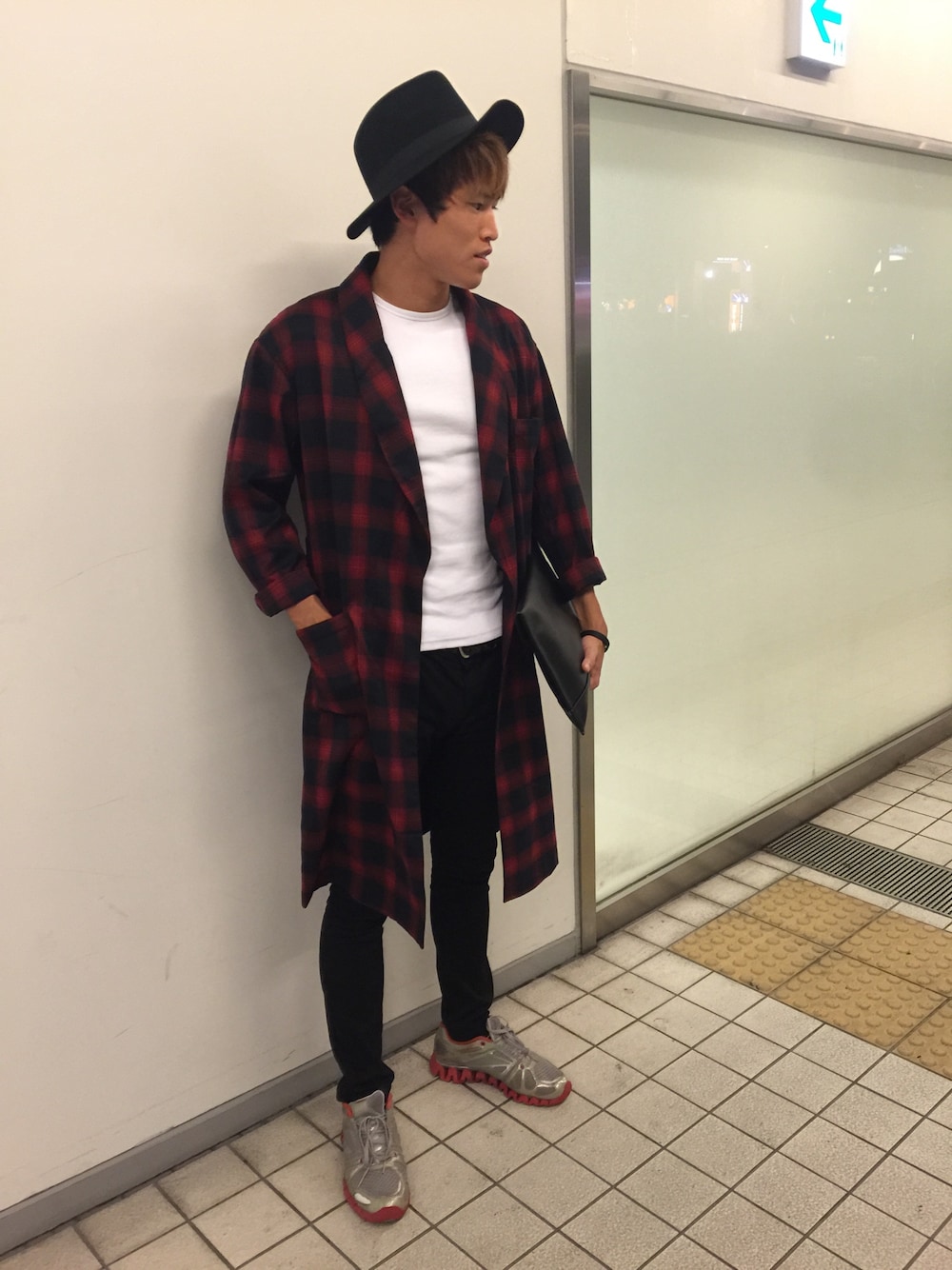 秋コーデ👌👌ガウンの赤チェック柄が魅力的です✨まだこの時期はジメジメしてるからもうちょっと後かなと思いました😰(笑)