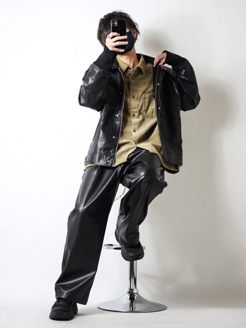 TJのライダースジャケット「フェイクレザー ビックシルエット 比翼ブルゾン<ユニセックス>」を使ったコーディネート