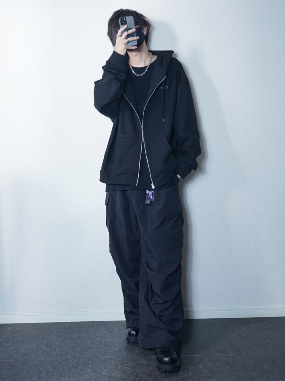 オールブラック🐦⬛ いいね、+お気に入り、 フォローありがとうございます😊 モチベ上がります🔥 今回は春に活躍するパーカーと、 年中履けるカーゴパンツを着用! Instagramに詳しく投稿してます! @tj__wear