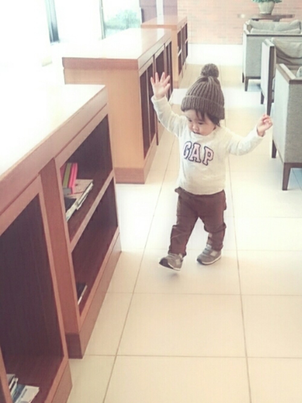 ご覧頂きありがとうございます♡ 今日もいつもの公園コーデ♫ 地味にドットなのが可愛いGAPのトップスにプティの茶パン♥ それにおばあちゃんmadeの帽子♫ きいろマル公園好き好き症候群でたっぷり2時間遊んでも帰ろうと言うと大ダダこねます(¯―¯٥) 帰ろうって言葉聞いた途端にぐずぐずスイッチが入ります😣💦 家でしまじろう見ようとかご飯食べよう!とかいろいろ言っても何よりも遊ぶのが1番みたいでなかなか聞き入れてくれません😪😪 公園好きっ子のママはみんなどうやって連れて帰ってるのかなぁ〜?? あ、そして謎の歩行訓練の実態がわかりました。どうやら英語であそぼのヘンテコダンスの歩き方真似てるようです😅