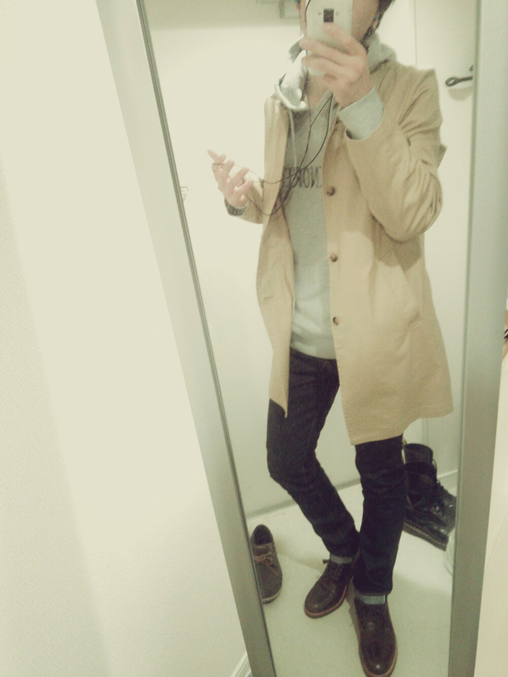 ロングコートに細身のパンツ…良くないですか?笑