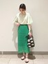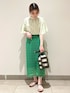 グリーンでまとめたワントーンコーデ 同色系のアイテムですが、素材感の違うものを合わせれば違和感なくまとまります◎ (ブラウス) お袖のフリルのデザインや 程よい透け感と艶のある生地感で華やかな印象になるブラウス。 シンプルなパンツやタイトスカート合わせでコーディネートがまとまるアイテムです。 前後両前で着用できるので、気分で変えて楽しめます。 お家で洗えます◎ (スカート) クロシェ柄の可愛いタイトスカート 裏地もしっかりと付いており、透け感を気にせず着用できます。 後ろゴムで履き心地も楽ちんです! ロゴTやスニーカー合わせでカジュアルにも着回せます◎ 152㎝/骨スト/1stイエベ春2ndブルベ夏 着用サイズ 全て36 Instagram @toko_nol