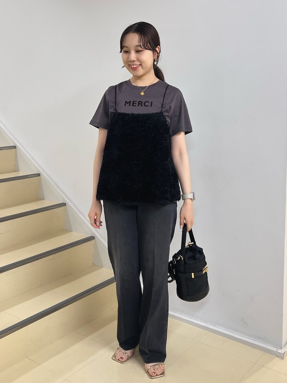 着用サイズ キャミソール38(ワンサイズ) Tシャツ38(ワンサイズ) デニムxs(XXS.XS.S.M.L) キャミソール 今期トレンドのテープチュールキャミです! ふっくらした素材感が可愛い一目惚れアイテム◎ Tシャツやノースリーブと重ねて早い時期から着られて、 秋はシャツやロンTと重ねても可愛いです☺︎ Tシャツ 接触冷感の機能付きTシャツです。 ロゴ部分がふわふわしたフロッキー素材で可愛いです。 綿100%で生地感厚すぎず、さらっとした着心地で着られます。 デニム センタープレス入りで、自然と美脚見えします。 とっても脚長効果があるので、特に小柄な方にもおすすめしたいです! 生地が柔らかく履きやすいのもポイントです。 普段デニム履かれない方でも、すっきりしたシルエットなので挑戦しやすいです◎ 152㎝/骨スト/1stイエベ春2ndブルベ夏 インスタ @toko_nol