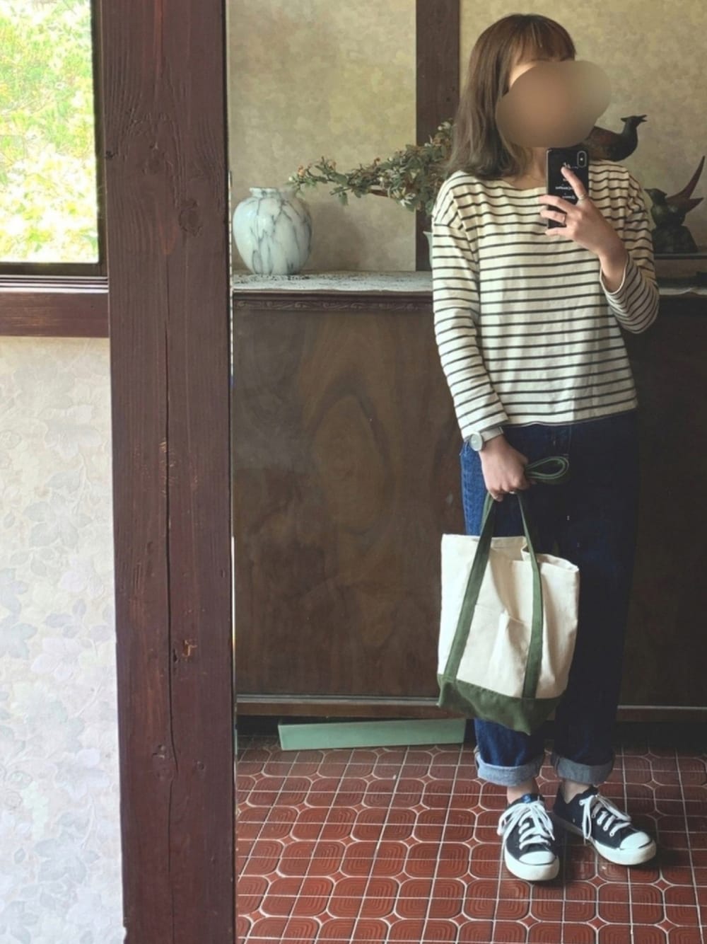 kmmyのTシャツ/カットソー「ボーダーボーダーボートネックプルオーバー」を使ったコーディネート