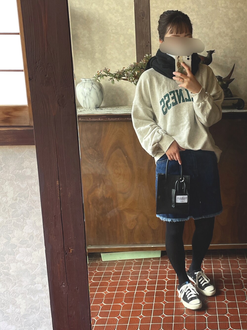 kmmyのスウェット「カレッジロゴスウェット」を使ったコーディネート