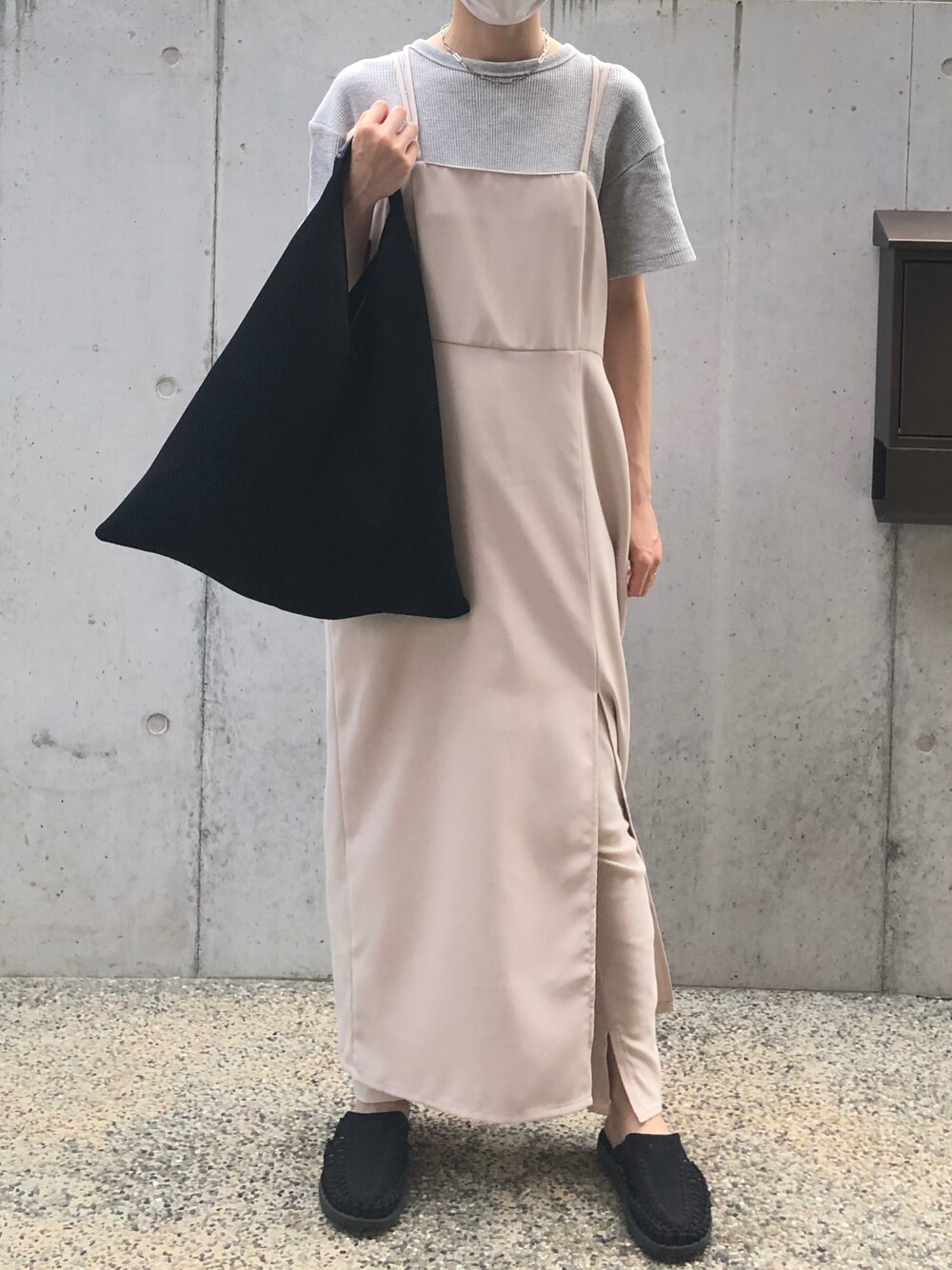 スリット入りのキャミワンピース。 お値段以上すぎてしまむらで衝動買い👛