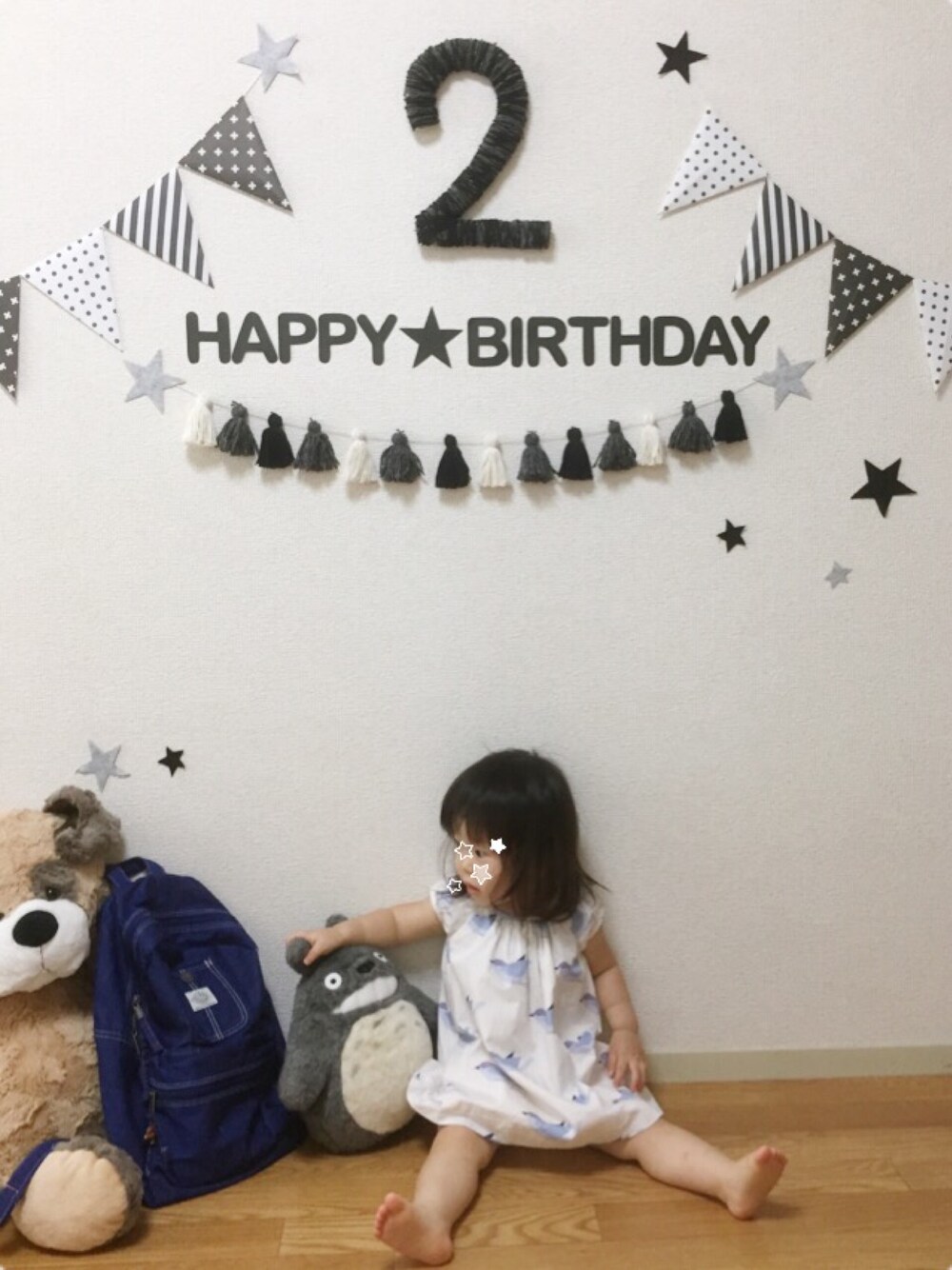 かなり久々ですが💦 娘、2歳になりました😊✨ デニムリュックもらえてうれしい♡ 私が😂 娘はトトロがお気に入り😍