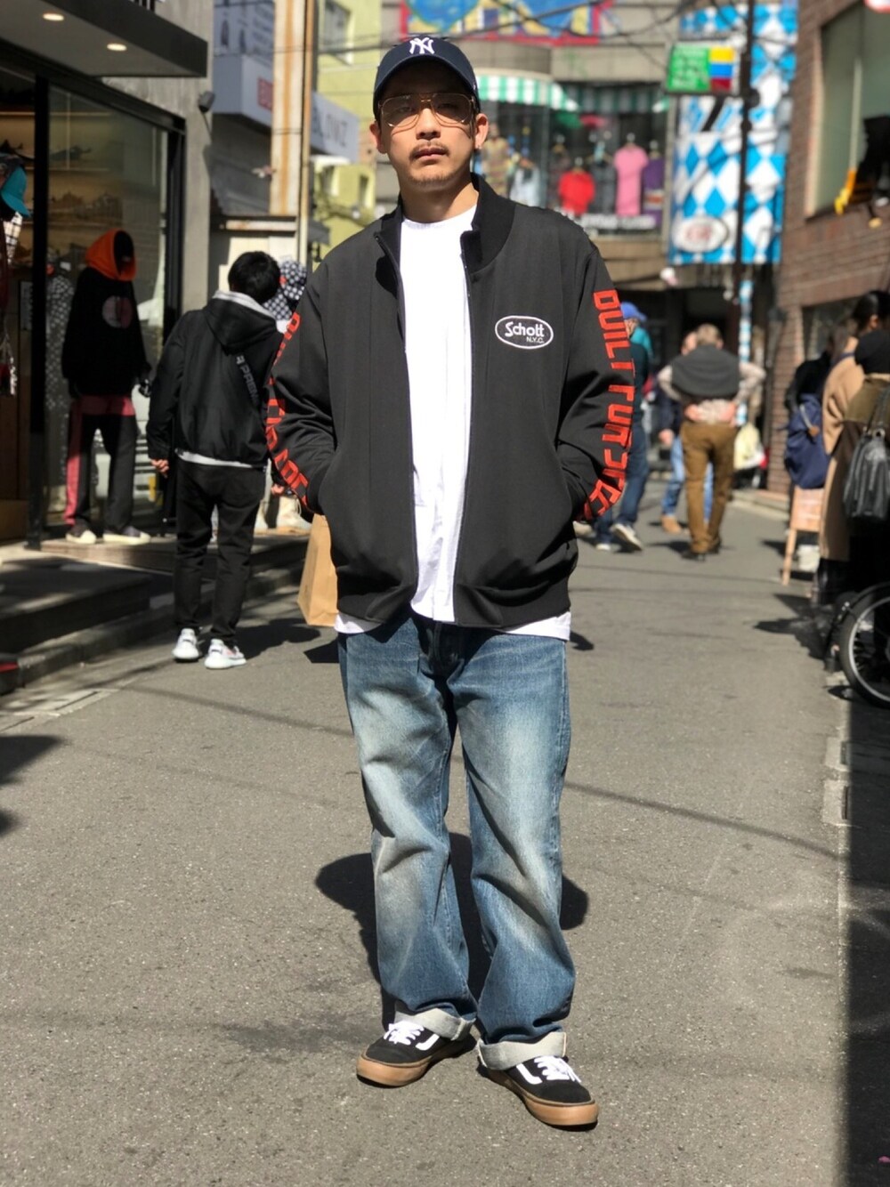 Tomoya Miura(Schott 横浜ビブレ店)のジャージ「Schott/ショット/ZIP UP JERSEY GO CANNONBALLERS/ジップアップ ジャージー キャノンボーラーズ」を使ったコーディネート
