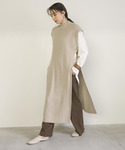 くるくるはるのののベスト「サイドスリットデザインニットベスト/プチハイネックリブサイドオープンニットロングワンピ」を使ったコーディネート