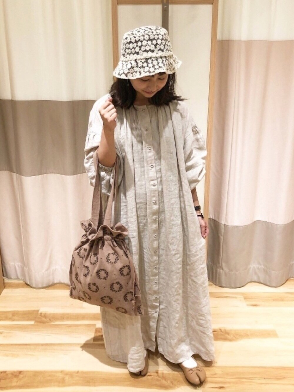 ヤスイのワンピース「【Slow linen】後ウエストリボンワンピース」を使ったコーディネート