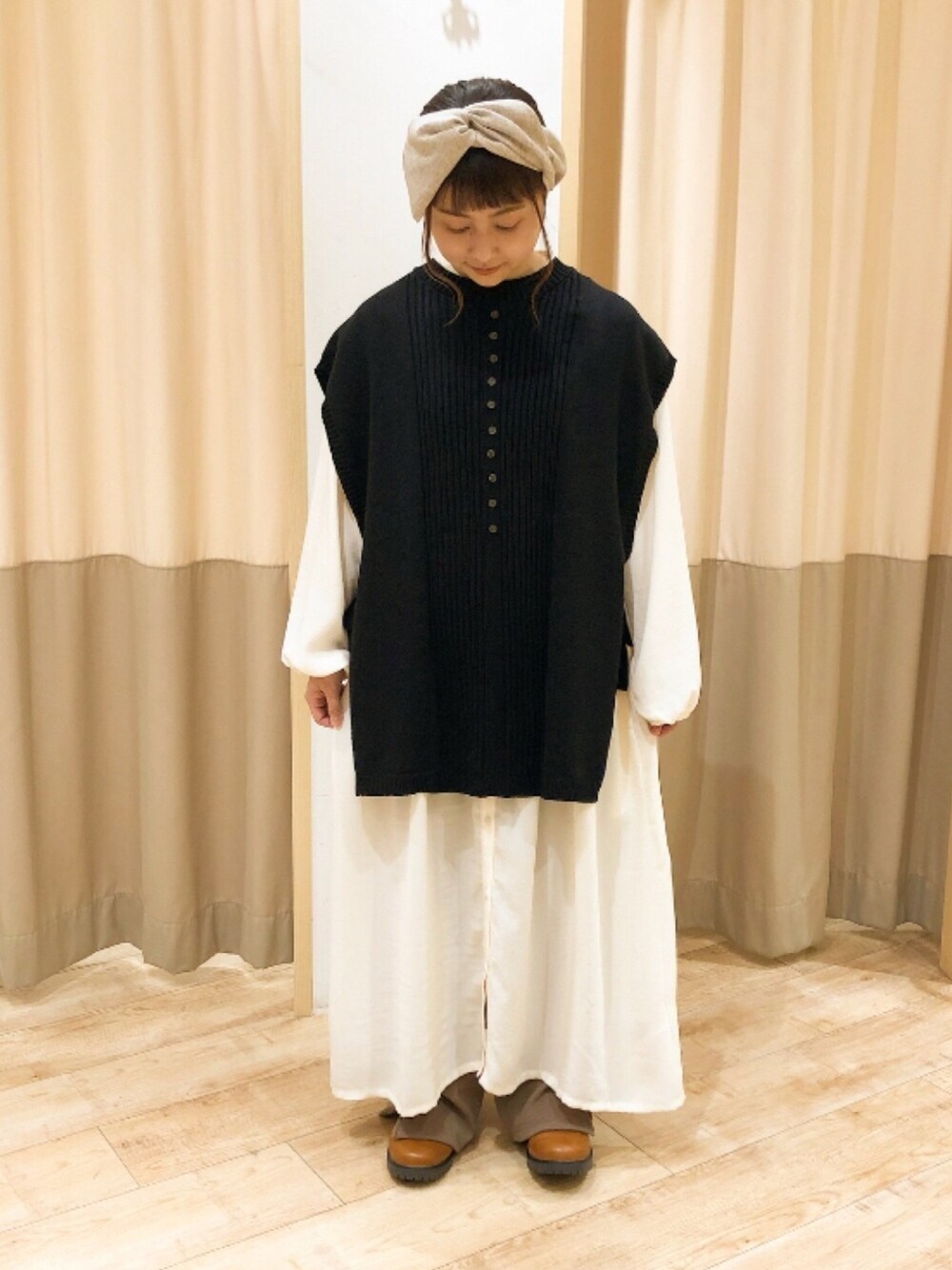 ヤスイのベスト「チュニック丈サイドリボンベスト」を使ったコーディネート