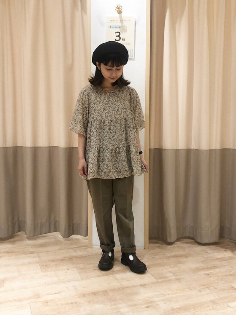 ヤスイのシャツ/ブラウス「小花柄ティアードブラウス」を使ったコーディネート