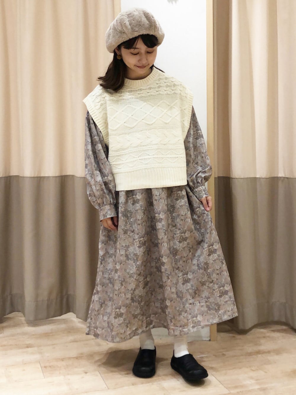 ご覧いただきありがとうございます💐 柄物ワンピースに抵抗がある方も ベストとレイヤードすると挑戦しやすいです◎ ぜひお近くの店舗やオンラインショップでご覧ください✔️