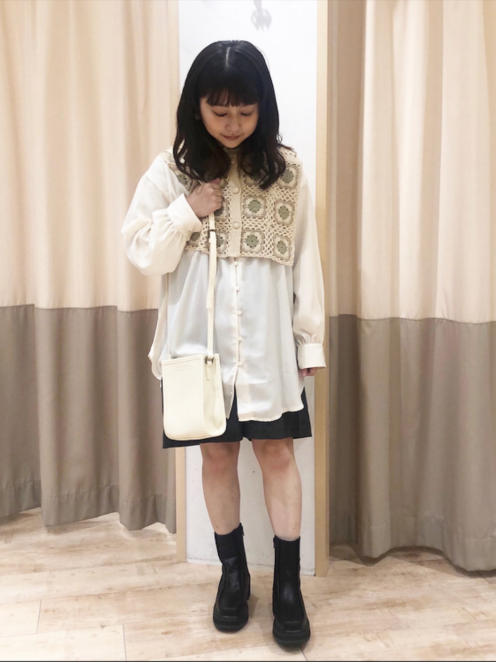 ヤスイのベスト「【たかあしあかりコラボ】かぎ針ニットベスト」を使ったコーディネート